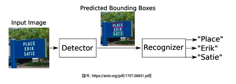 1. 들어가며 - OCR = Text detection + Text recognition 1) 이번에는 딥러닝 기반의 OCR이 어떻게 이뤄지는지 알아본다. 2) 위 그림에서 보는 것처럼, 이미지 속의 문자를 읽는 OCR은 크게 문자의 영역을 검출하는 Text detection 그리고 검출된 영역의 문자를 인식하는 Text recognition으로 구분할 수 있다. 3) 이 두 과정을 거쳐 이미지 속 문자를 읽게 된다. 4) Text detection (1) 그동안 우리가 다뤘던 일반적인 Object detection 태스크를 문자 찾아내기로 확장한 버전이라고 생각할 수 있겠다. (2) 그러나 앞으로 살펴보겠지만, Text detection은 단순히 Object detection 기법 뿐 아니라 Segme..